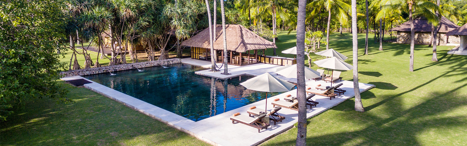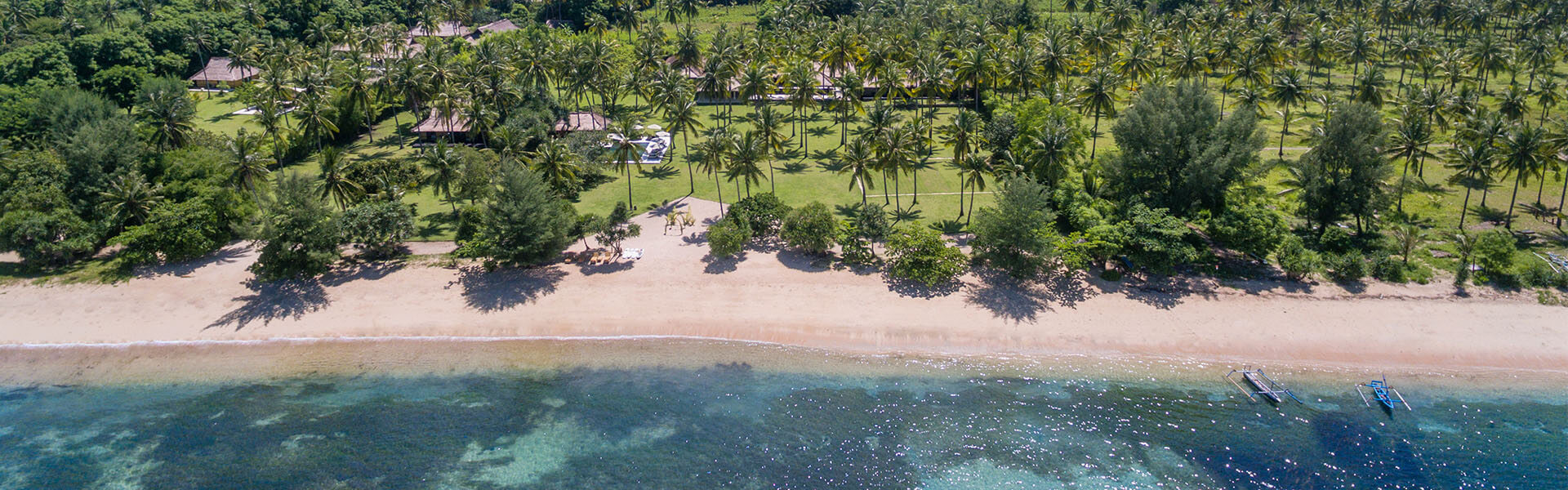 Sira Beach House is an idyllic beachfront villa in Lombok set on five acres of beautiful coconut groves bordering the white sands and crystal clear waters of the Sira Peninsula on the island’s north west coast. Handsome, traditionally crafted pavilions, including six delightful ensuite bedrooms, provide space and luxury for families and groups of friends looking for a perfect tropical island escape. With an 18-metre private pool and tennis court, elegant dining and living space and a welcoming staff to tend to every need, an unforgettable holiday is guaranteed.